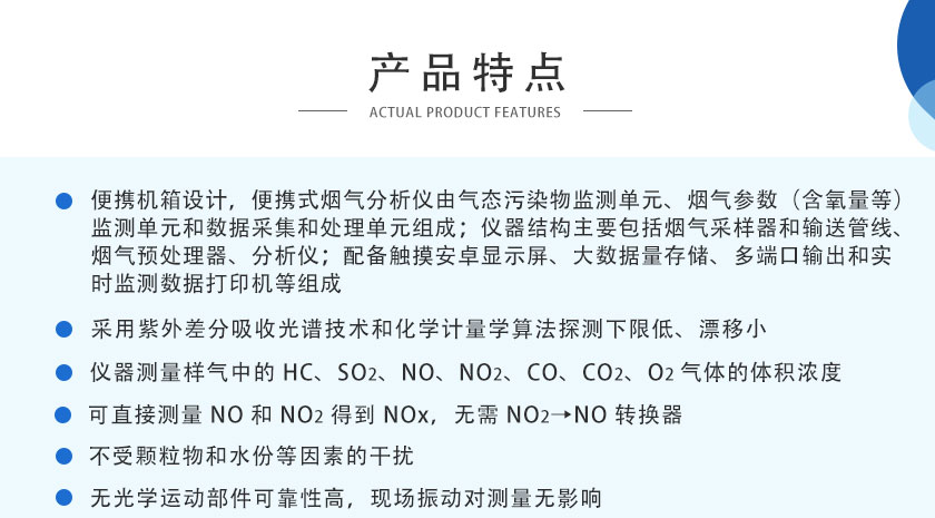 SO2、NO、NO2:紫外DOAS技術;O2:電化學技術;HC、CO、CO2:NDIR非分光紅外技術
