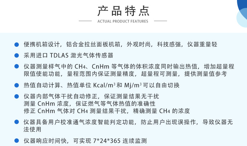 采用國際先進的NDIR非分光紅外技術,主要用于測量各種天然氣氣、生物燃氣中的CH4、CnHm?等氣體體積濃度及熱值。測量精度高、結構簡單、維護方便,軟件功能強大,可拓展性強、現場實用性好,目前暢銷國內外。適用于高校、環境科研機構,燃氣計量檢測部門、節能監測部門,液化氣廠、液化氣站、天然氣公司等直接用戶,燃氣具生產企業、廠商測量可燃氣體不同成分的體積濃度和熱值。