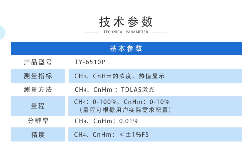 CH4:0-100%;CnHm:0-10%(量程可根據用戶實際需求配置) |