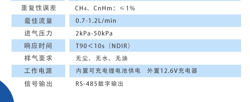 CH4:0-100%;CnHm:0-10%(量程可根據(jù)用戶實際需求配置) |