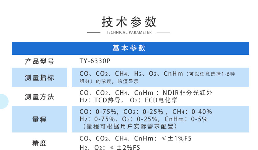 CO/CO2/H2/O2/CH4:0-100%;CnHm:0-10%; O2:0-25% |