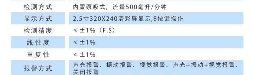 內置泵吸式,流量500毫升/分鐘 |