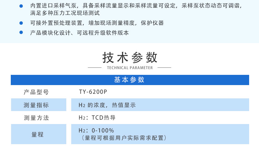 采用國際先進TCD熱導技術,主要用于測量各種氣體中的H2體積濃度。