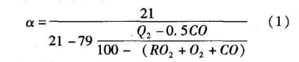 空氣消耗系數(shù)(簡稱α)直接影響爐的燃燒狀況及熱效率、氧化燒損等。α的大小與燃燒種類、燃燒方法、燃燒裝置的結(jié)構(gòu)及其工作好壞都有關(guān)。氣體燃料空氣消耗系數(shù)的經(jīng)驗數(shù)據(jù)為n=1.05~1.15.通過氣體成分分析儀,可按以下公式計算出α。