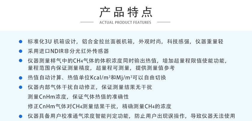 (3)儀器測量樣氣中的CH4氣體的體積濃度同時輸出熱值。增加超量程限值使能功能,量程范圍內保證測量精度,超量程可測量,提供測量值參考。