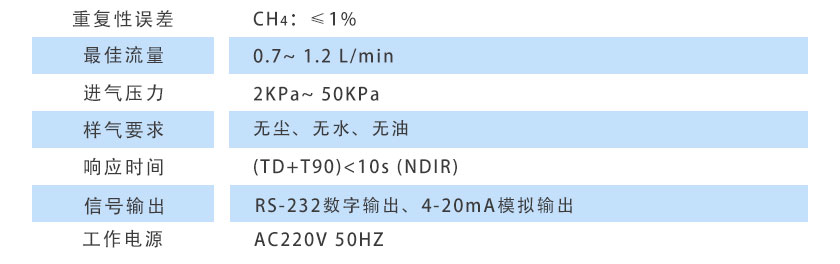 (4)分辨率:CH4:0.01%(針對低量程分辨率可以達到1ppm)