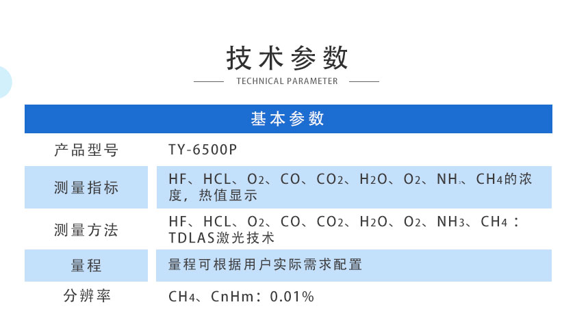 • 便攜激光氣體分析儀 TY-6500P 用國際先進的TDLAS激光技術,主要用于測量各種氣體中的HF、HCL、O2、CO、CO2、H2O、O2、NH3、CH4?等氣體體積濃度及熱值。