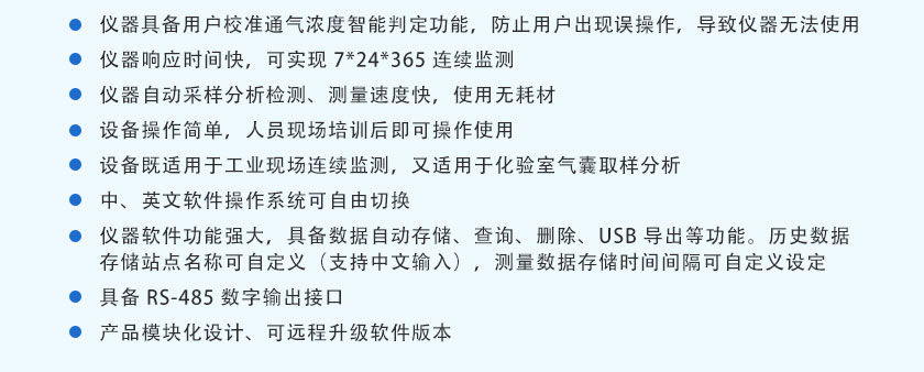 采用自主知識產權的NDIR非分光紅外技術,主要用于測量氣體中的CO、CO2、CH4、C3H8、SO2、NO等氣體的體積濃度及熱值。全進口傳感器、測量精度高、結構簡單、維護方便,軟件功能強大,可拓展性強、現場實用性好,目前暢銷國內外。