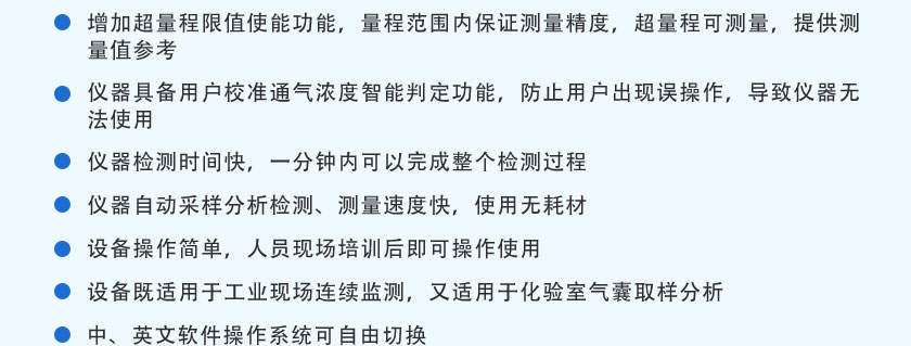 適用于高校、環境科研機構,燃氣計量檢測部門、節能監測部門,液化氣廠、液化氣站、天然氣公司等直接用戶,燃氣具生產企業、廠商測量可燃氣體不同成分的體積濃度和熱值。