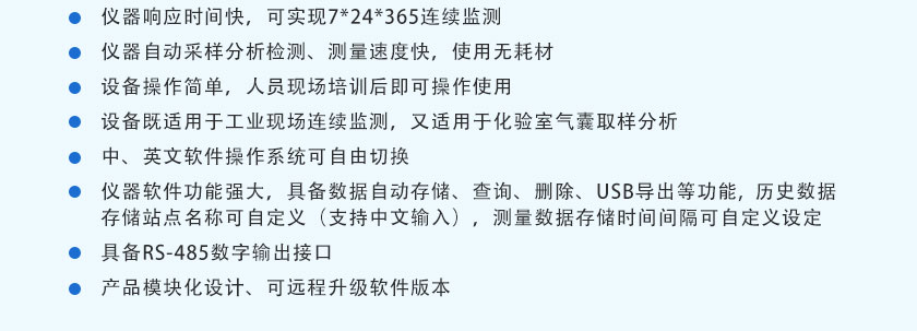 (8)儀器響應時間快,可實現 7*24*365 連續監測。