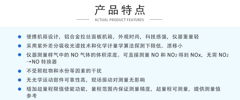 3)儀器測量樣氣中的NO氣體的體積濃度。可直接測量NO和NO2得到NOx,無需NO2→NO轉換器。
