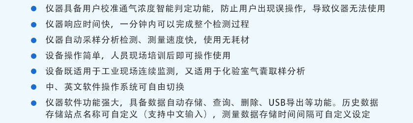 11)設備既適用于工業現場連續監測,又適用于化驗室氣囊取樣分析。